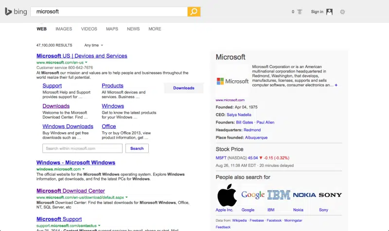 Si ces modifications ne révolutionneront pas la recherche sur Bing, on remarque tout de même que le moteur de recherche tente de concurrencer Google en se rapprochant de son design. Dans la même optique, Bing dévoilait au milieu du mois d’août la sortie de la recherche conversationnelle sur son moteur, c’est-à-dire que Bing garde en mémoire vos recherches précédentes pour vous donner des réponses qui s’y rapportent (plus d’informations à découvrir sur Abondance)