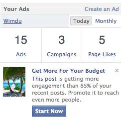 Avez-vous vu récemment, vous aussi, le résumé de votre campagne actuelle s’afficher dans votre page d’accueil Facebook ? Oui ? Et bien dans les jours qui viennent, il se pourrait bien que vous puissiez également voir une icône « Get more for your budget » qui met en évidence votre publication la plus pertinente, celle qui a suscité le plus d’engagement de la part de vos fans.